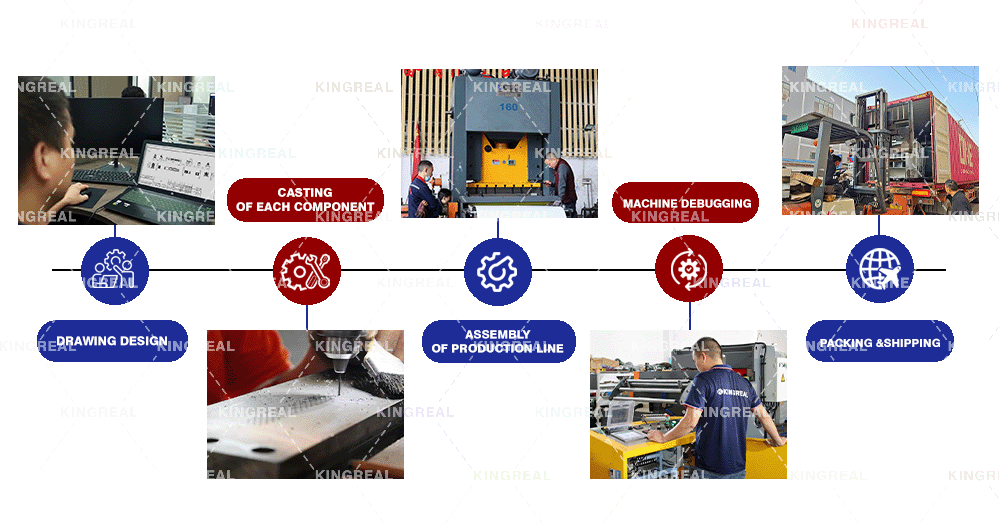 Като професионален производител на оборудване за обработка на бобини, KINGREAL може да осигури цялостно решение, като машина за рязане на рулони и машина за рязане на рулони по дължина. И също така може да осигури производствена линия за изравняване и щанцоване на метални листове за клиента.